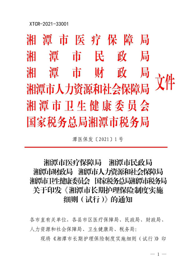 潭醫(yī)保發(fā)〔2021〕1號(hào)湘潭市長期護(hù)理保險(xiǎn)實(shí)施細(xì)則